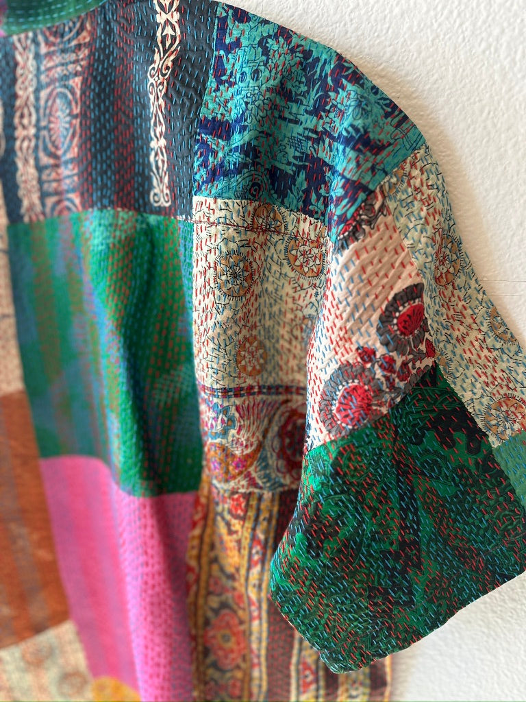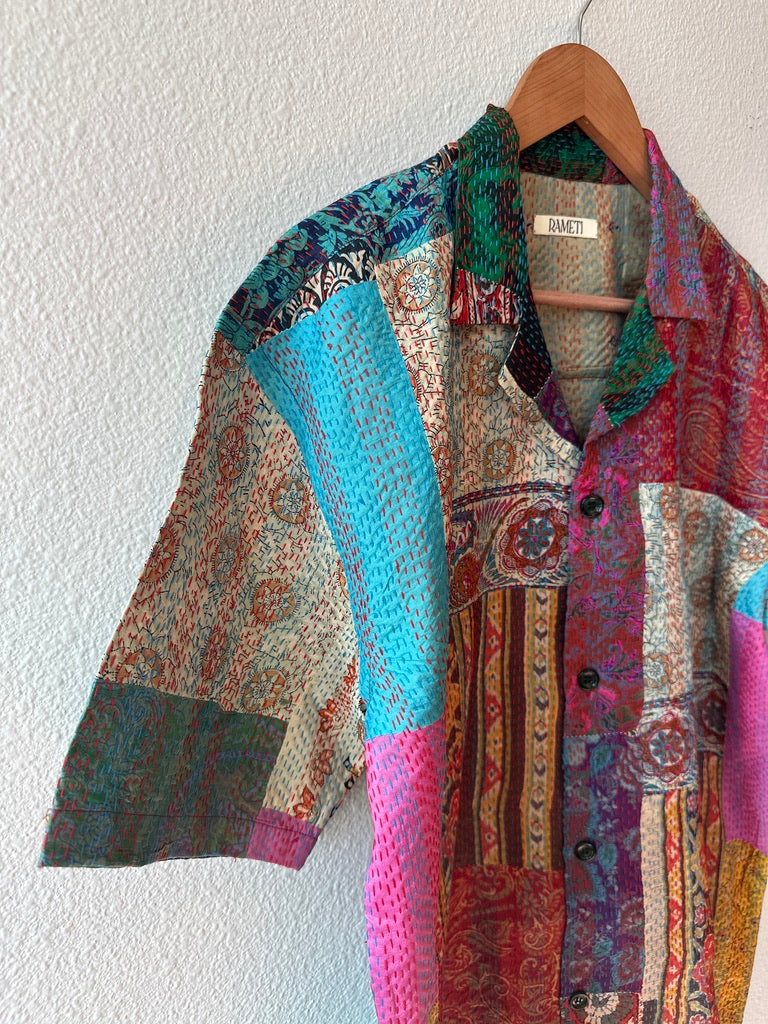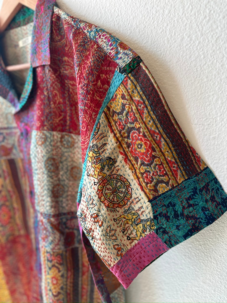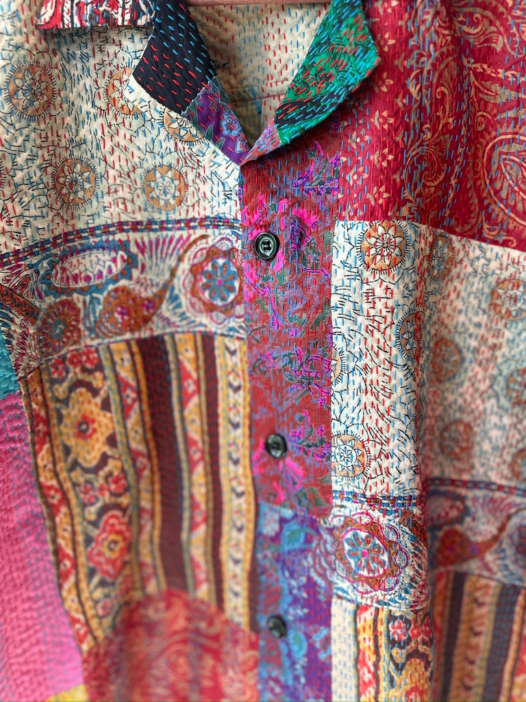 Condition: The shirt is made from a Vintage kantha scarf. The fabric used may have slight imperfections.