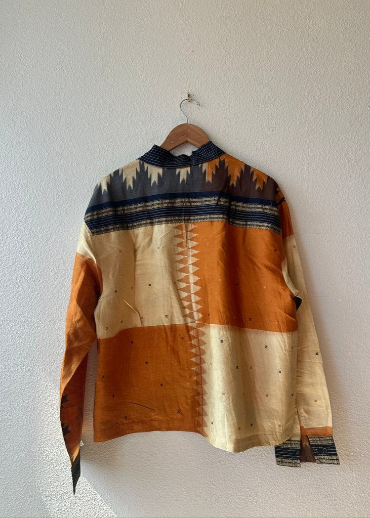 Condition: The shirt is made from a vintage Sari textile. The fabric used may have slight imperfections.