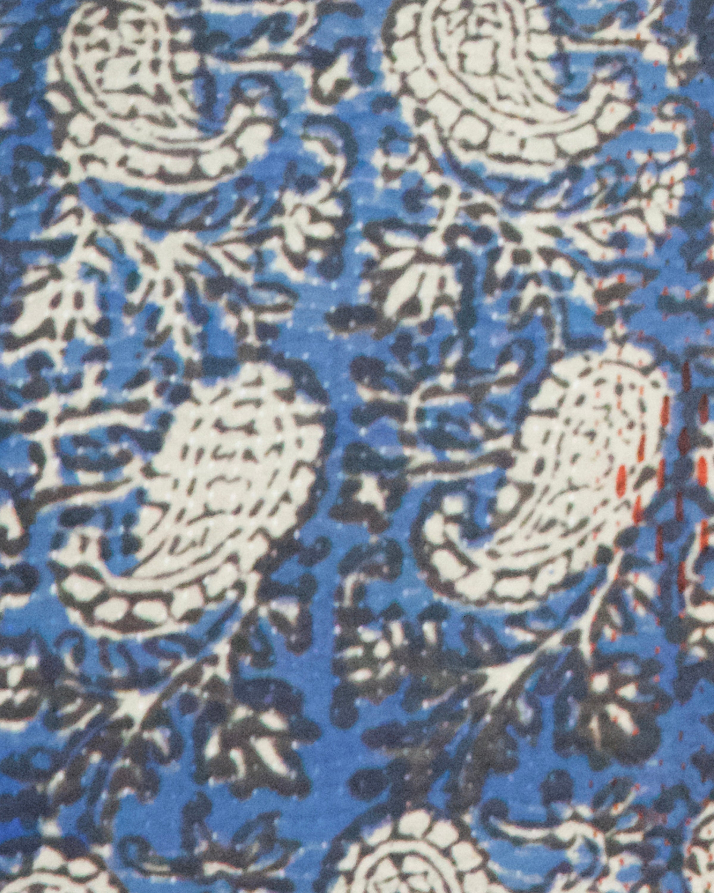 This one of kind pillow is crafted from a vintage kantha quilt, dating back to the 1940s-1950s, which were traditionally made by repurposing old saris into quilts using the intricate kantha embroidery stitch. To enhance its uniqueness, the quilt has been over-printed with a Kalamkari hand block print. We made only two pillow cover and you will get one of the two.