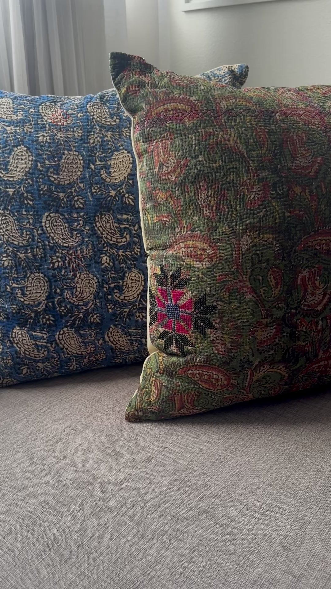 Kantha Block Print Pillow Cover - Lawn 20x20 Pillows